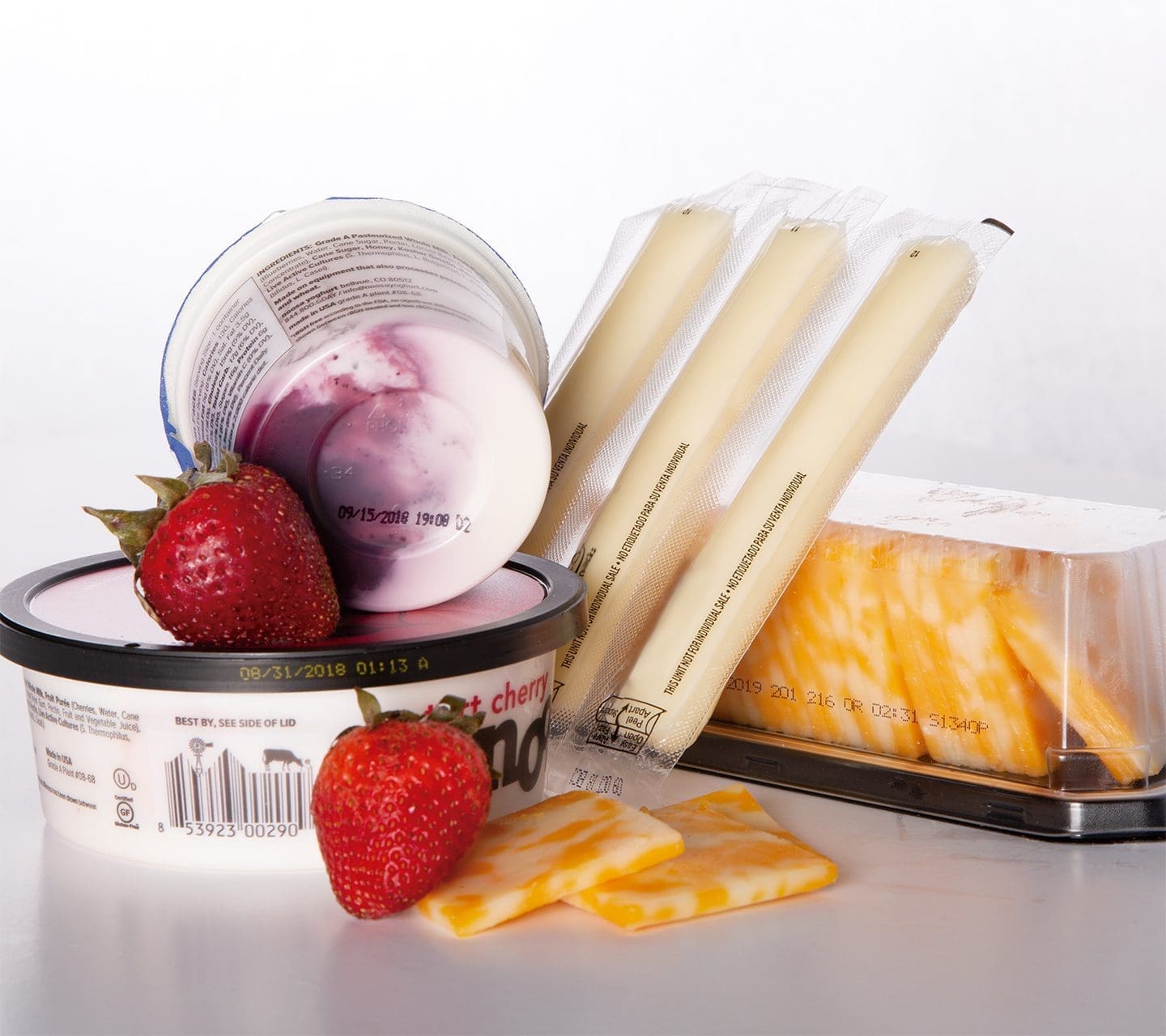 Marcação de validade, lote e rastreabilidade em embalagens primárias e secundárias de alimentos, sejam sólidos, líquidos ou congelados.