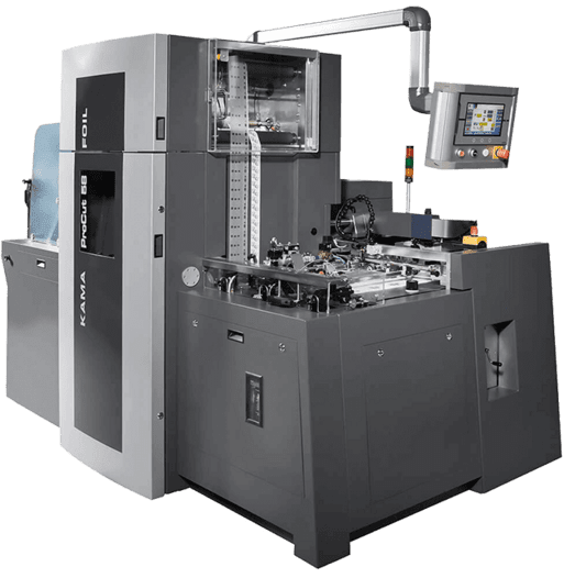Com a primeira máquina do mundo para corte e acabamento de folhas pequenas, a KAMA ProCut 58 Foil realiza todo o processo, do corte e vinco ao relevo frio e Braille, passando também por kiss-cutting e hot-cutting em plásticos, além de aplicações premium com hot stamping e relevos metálicos.