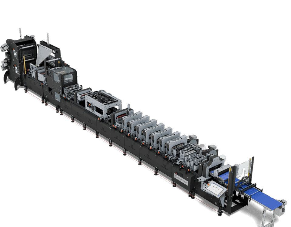 Equipamento desenvolvido para formatação de pouches com uma ou mais bobinas, concebida para convertedores de embalagens e labels.