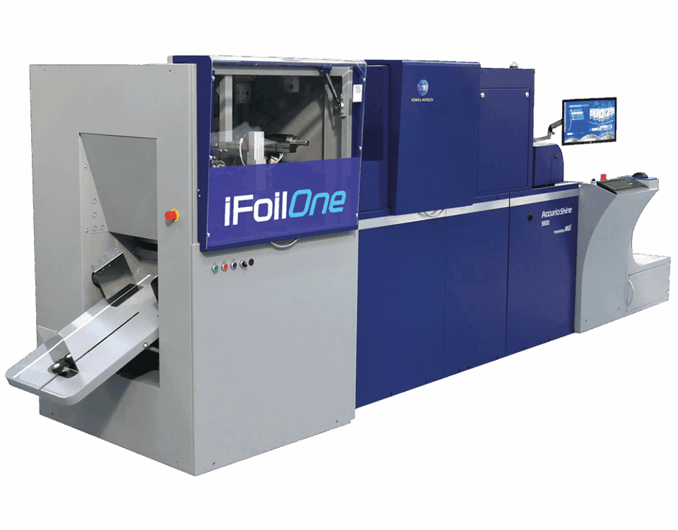 O AccurioShine 3600 é uma solução independente para adicionar efeitos de brilho 2D e 3D a um custo razoável e sem os passos complicados dos sistemas convencionais.