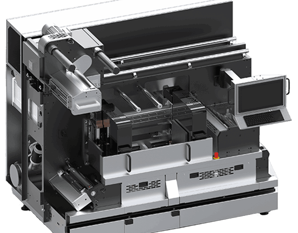 Sistema compacto de acabamento com inspeção 100% integrada, ideal para aumentar a produtividade e garantir qualidade total no corte e rebobinamento de etiquetas.