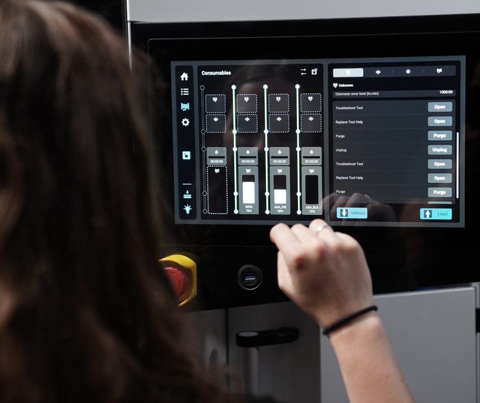 A F3300 é a impressora FDM mais avançada da Stratasys, criada para redefinir a manufatura aditiva em larga escala. Com cabeçotes redundantes e troca automática de ferramentas, ela garante máxima disponibilidade. A calibração ativa, a secagem inteligente dos materiais e os sensores de monitoramento em tempo real garantem precisão e confiabilidade em toda a operação. Aliada ao GrabCAD Print e ao GrabCAD Print Pro, oferece um ecossistema completo para quem busca automação, produtividade e controle total.