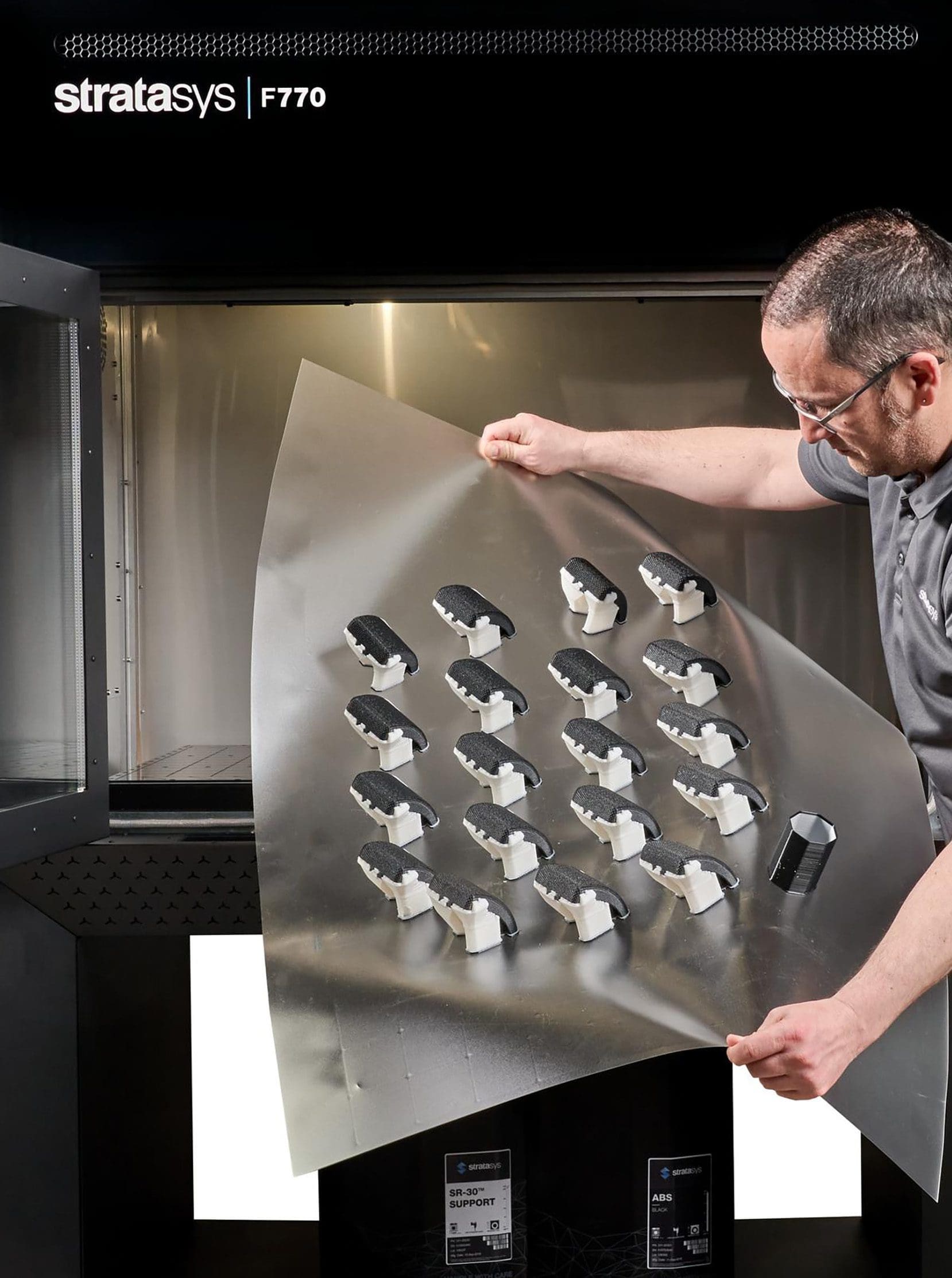 A Stratasys F770™ foi desenvolvida para atender à demanda por peças grandes com alto desempenho dimensional, sem os custos e complexidades típicos de impressoras industriais. Com volume de construção de 1000 x 610 x 610 mm, essa impressora FDM permite criar protótipos funcionais, peças finais e ferramentas em termoplásticos de engenharia com excelente qualidade.