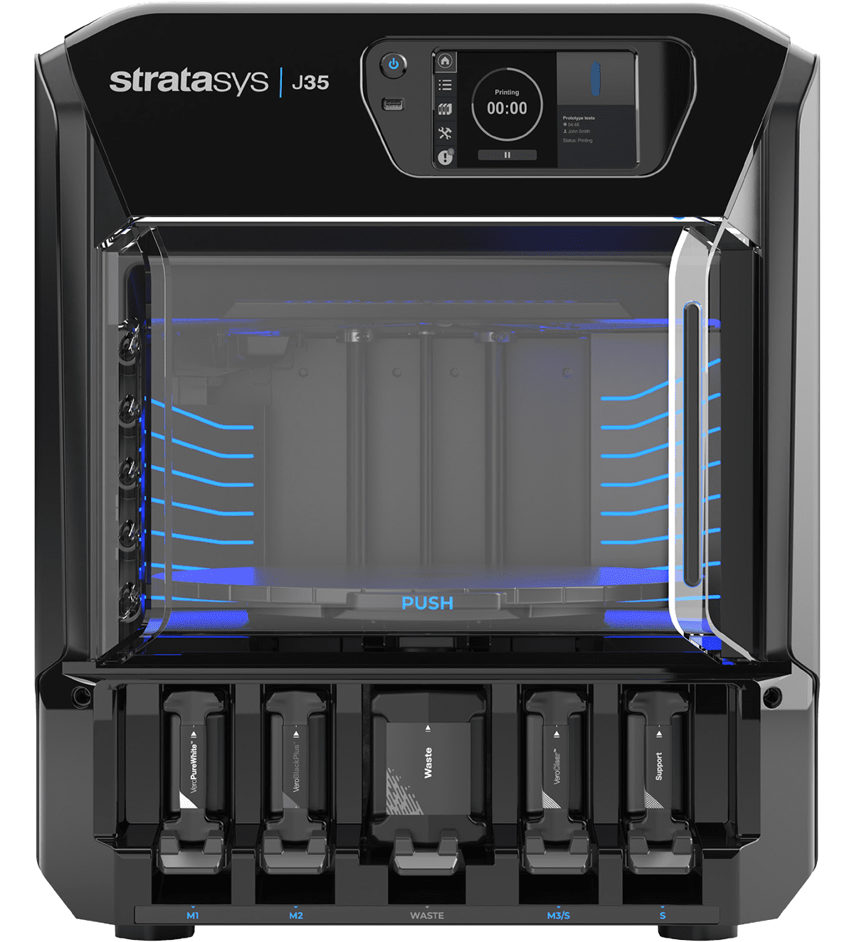 A J35™ Pro é uma impressora PolyJet acessível e compacta, perfeita para ambientes de escritório. Com suporte a múltiplos materiais em uma única impressão, ela permite criar protótipos com aparência final, peças funcionais e modelos com propriedades diferenciadas, como flexibilidade e transparência.